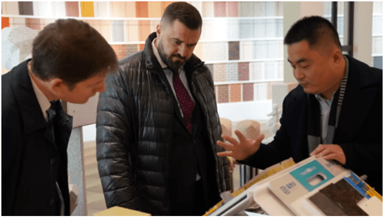 材料公司董事长郭祥恩先生及海外中心经理郑旭先生热情接待了代表团一行。考察伊始,郑旭先生向俄罗斯联邦工商会代表团介绍了富思特企业的发展历程、企业文化、荣誉奖项、研发成果、六大产品体系等方面内容。