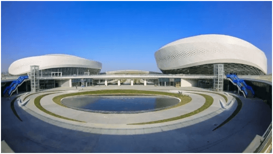 设计新颖,贴近自然。第二体育中心新颖的“水丝带”设计理念,让场馆宛如水丝带上的两颗璀璨明珠,造型活泼灵动,而训练馆与室外平台就像起伏的海浪,共同构成完整的体育空间。自然式的人文景观搭建,现代简约的手法营造,让其在众多工程项目中脱颖而出。