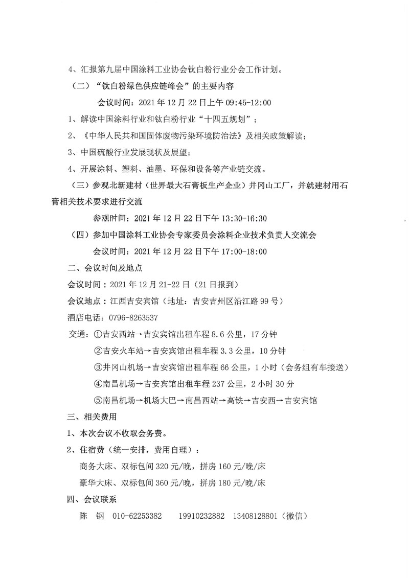 同期会议:“2021年中国涂料工业信息年会”,时间:12月23-24日,地点:江西吉安宾馆。按“2021年中国涂料工业信息年会”会议通知报名参会。
