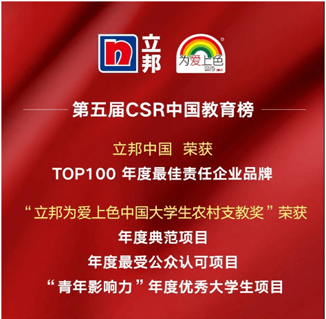立邦中国喜获第五届CSR中国教育榜多项荣誉