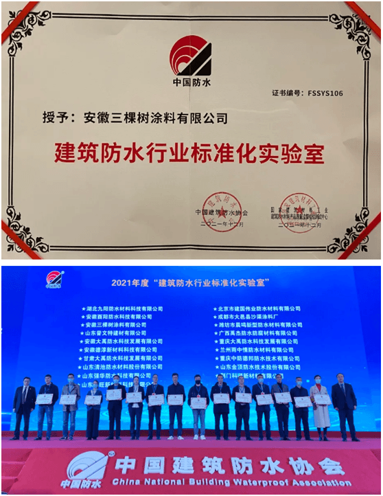 鉴于三棵树防水在生产工艺、材料、技术、装备、产品和质量管理等方所取得的创新成果,经专家组评审,此次三棵树防水安徽实验室被评为“建筑防水行业标准化实验室”。
