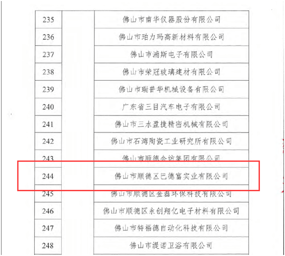 日前,广东知识产权保护协会正式发布“2021年度广东省知识产权示范企业”认定通知,巴德富顺利通过评审,被认定为“广东省知识产权示范企业”。