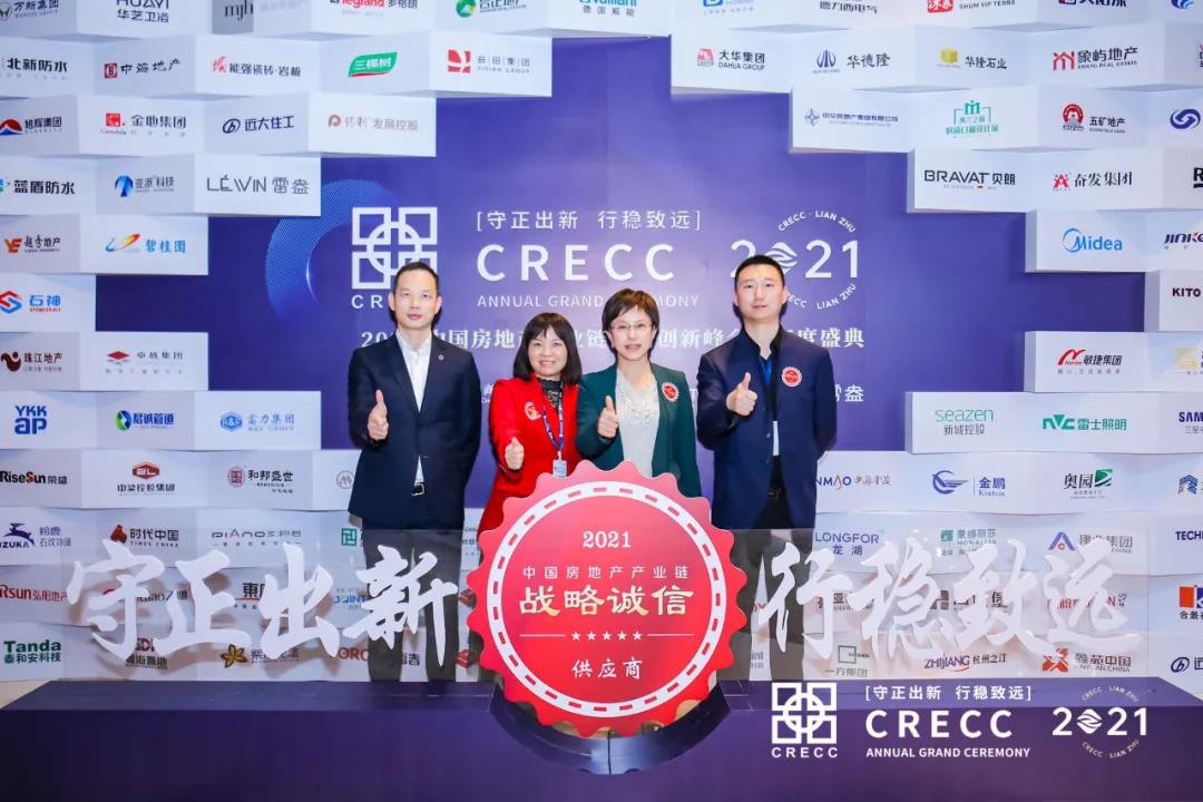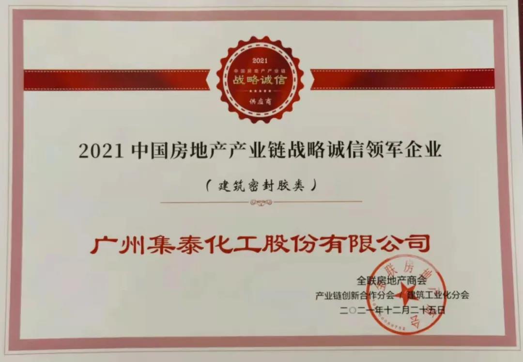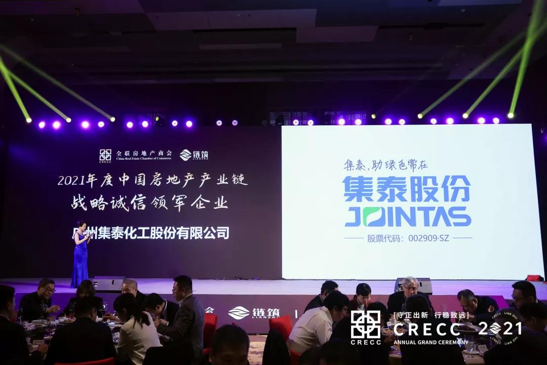凭借稳定的产品质量及卓越的服务品质,集泰股份荣获“2021中国房地产产业链战略诚信领军企业”称号。