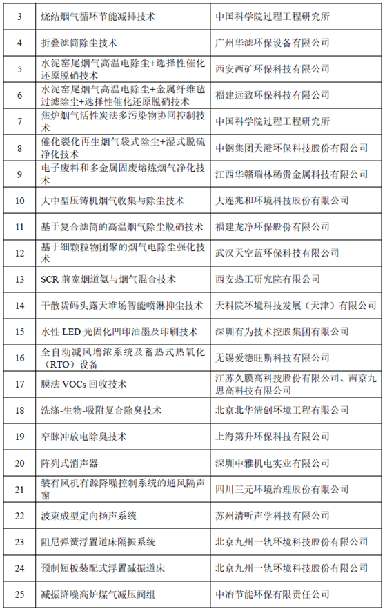 注:本名单序号与生态环境部印发的2021年《国家先进污染防治技术目录(大气污染防治、噪声与振动控制领域)》对应。