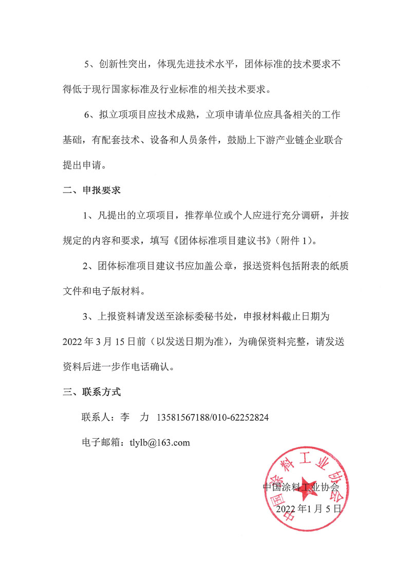 3、上报资料请发送至涂标委秘书处,申报材料截止日期为2022年3月15日前(以发送日期为准),为确保资料完整,请发送资料后进一步作电话确认。