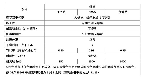 表1 GB/T 9756—2018《合成树脂乳液内墙涂料》面漆要求