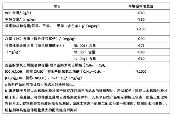 表2 GB 18582—2020《建筑用墙面涂料中有害物质限量》