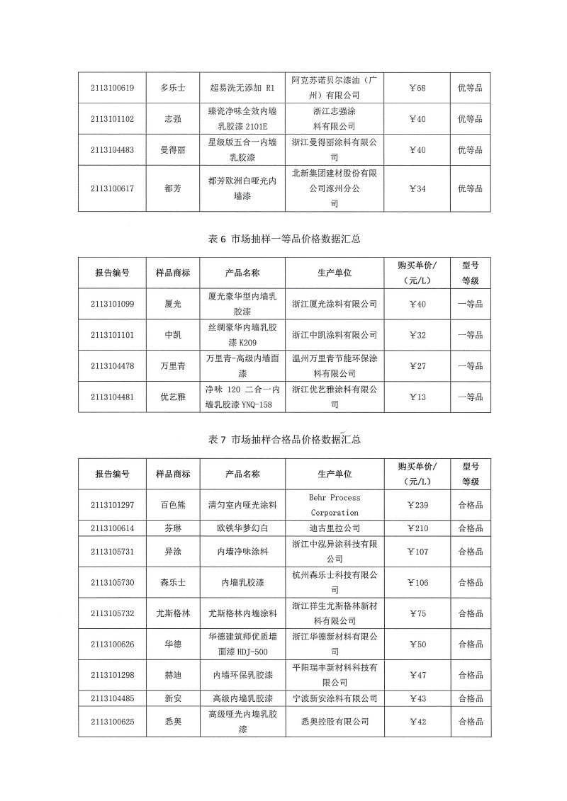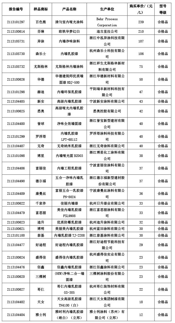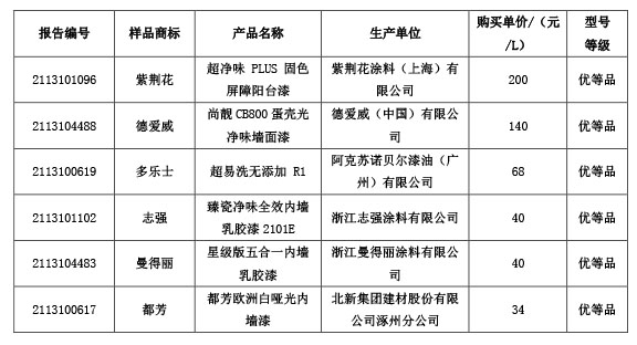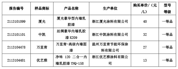 市场抽检内墙面漆样品有害物质检测信息汇总