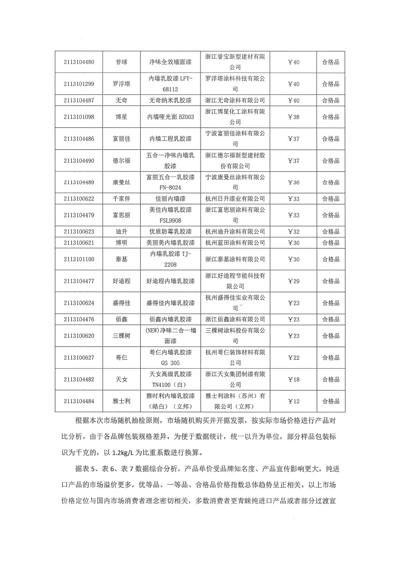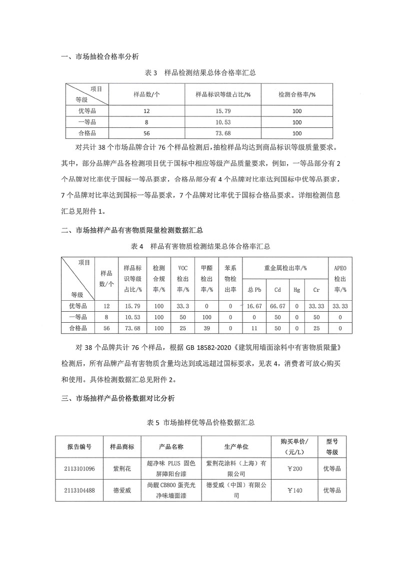 对38个品牌共计76个样品,根据GB 18582—2020《建筑用墙面涂料中有害物质限量》检测后,所有品牌产品有害物质含量均达到或远超过国标要求,见表4,消费者可放心购买和使用。具体检测数据汇总见附件2。