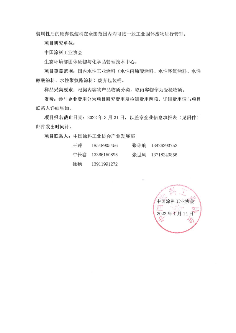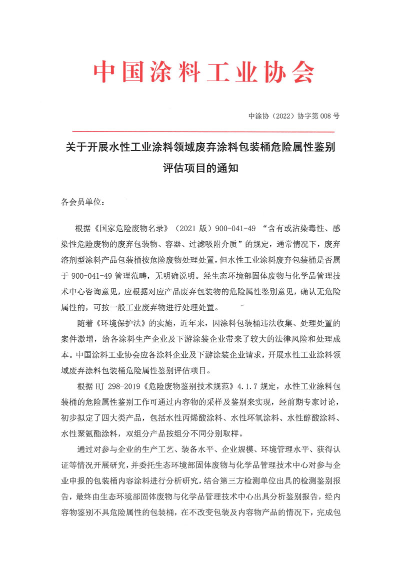 关于开展水性工业涂料领域废弃涂料包装桶危险属性鉴别评估项目的通知.pdf