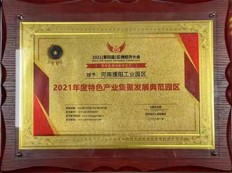 在日前举行的第五届博鳌企业论坛暨2021亚洲经济大会上,濮阳工业园区荣誉榜上再添光辉一笔,同时荣膺“2021年度特色产业集聚发展典范园区”及“2021年度最具投资价值园区”。
