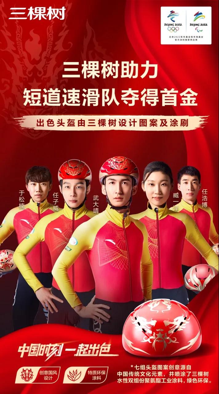 三棵树绿色科技为中国短道速滑国家队保驾护航。由三棵树设计图案及涂刷的中国短道速滑比赛头盔,在冬奥赛场见证短道队的出色时刻!