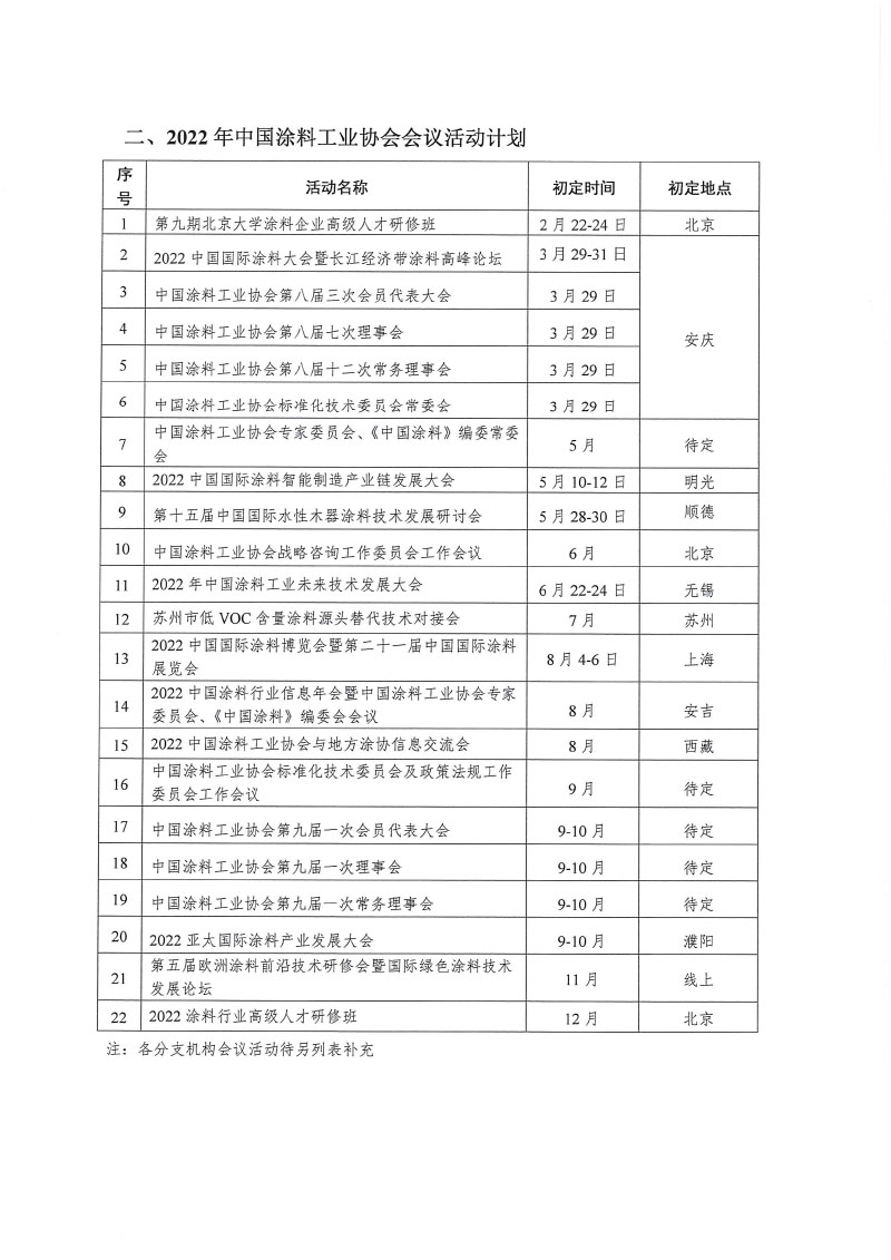 | 2 | 2022中国国际涂料大会暨长江经济带涂料高峰论坛 | 3月29-31日 | 安庆 |