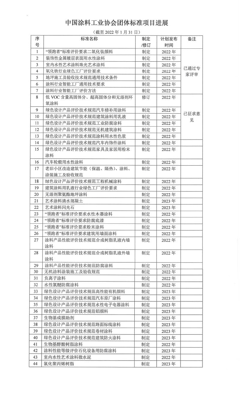 | 29 | 涂料产品性能评价技术规范防腐涂料 | 制定 | 2022年 | |