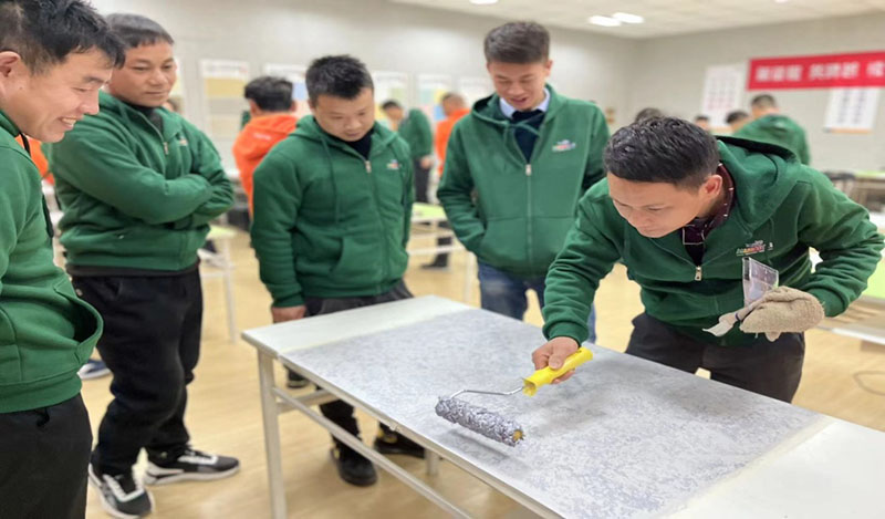 此次培训公司不仅安排了笔试和实操考试,还增加了对优秀学员进行奖励的环节,极大地激发了学员们的兴致。学员们由衷感到,通过本次培训,不仅对艺术涂料的产品知识和涂装技能获得了全面认知和提升,还切身体验到了艺术涂料的鬼斧之功及色彩之妙。配合鳄鱼涂料系列产品的花色和优异性能,相信有利于艺术涂料市场的拓展,为艺术涂料的推广打下坚实的基础。