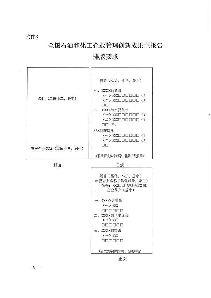 3、全国石油和化工企业管理创新成果主报告排版要求。