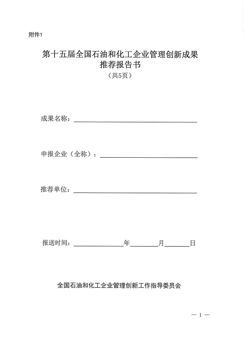 为组织做好第十五届全国石油和化工企业管理创新成果的申报、推荐与审定工作,现将有关事项通知如下: