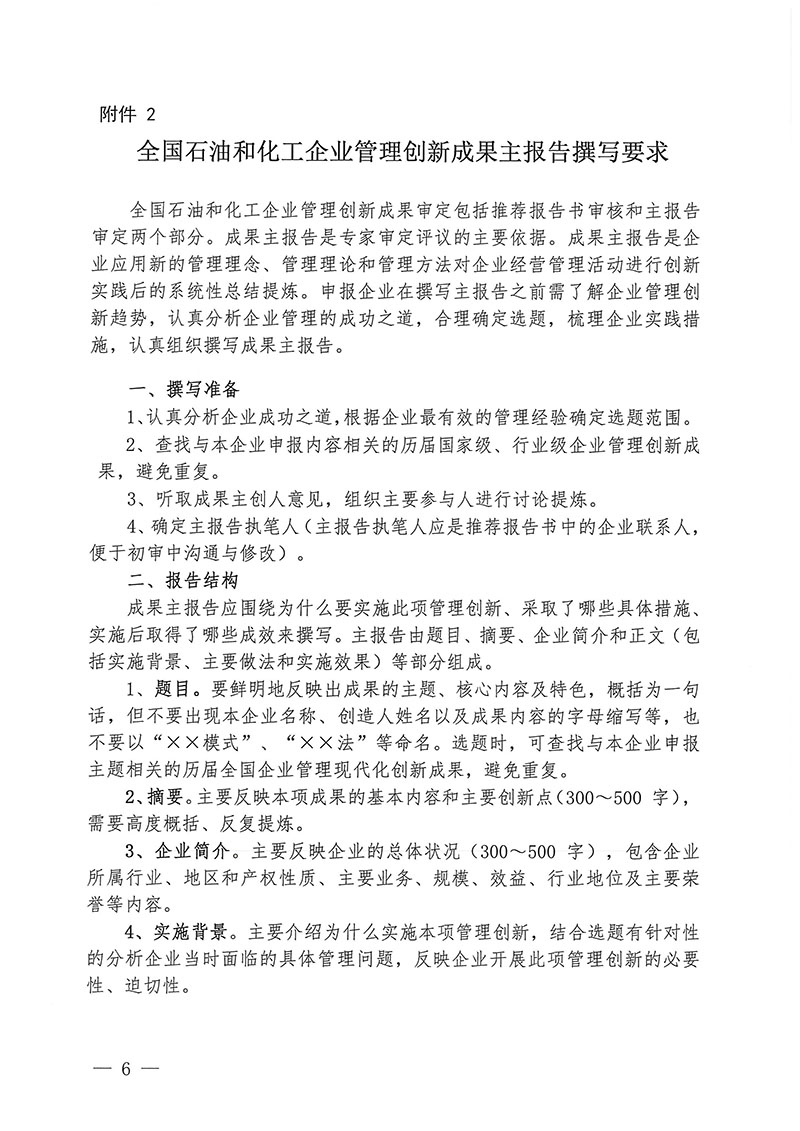 2、全国石油和化工企业管理创新成果主报告撰写要求;