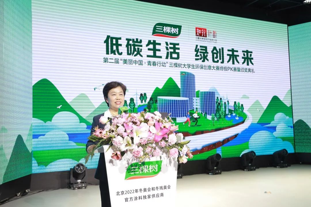 三棵树公益基金会徐荔芳理事长感慨的说到:“建设美丽中国需要年轻思维、青春力量。同学们巧妙的设计和大胆的畅想,让我深刻感受到三棵树绿色创新的理念与年轻人无限创意灵感的融合,将共创出更创新、更出色、更美好的可能性!”