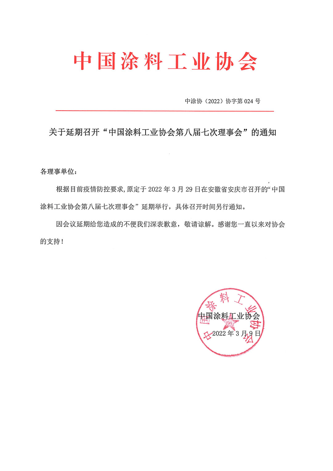 根据目前疫情防控要求,原定于2022年3月29日在安徽省安庆市召开的“best365中国官方网站第八届七次理事会”延期举行,具体召开时间另行通知。