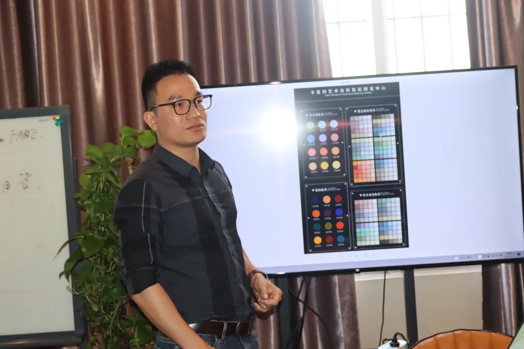 围绕色彩话题,王辉认为每一个色彩都是有个性、有故事的。卡百利艺术涂料设计总监伍建军特别现场为大家讲解了卡百利色彩体系的背后故事,让大家对艺术涂料的色彩体系与色彩搭配有了更深层次的了解。