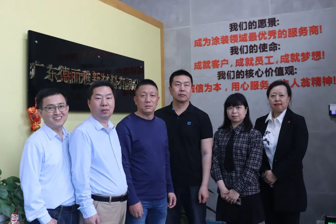 3月11日下午,刘杰一行还走访了水性工业漆代表企业广东德丽雅新材料有限公司,与德丽雅总经理江建东、副总经理汪松青进行了亲切交谈。