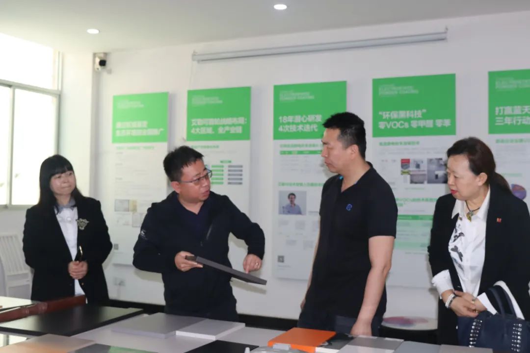 骆志刚为刘杰一行介绍了艾勒可科技公司基本情况,以及艾勒可在粉末涂料领域的努力和取得的一些成绩。