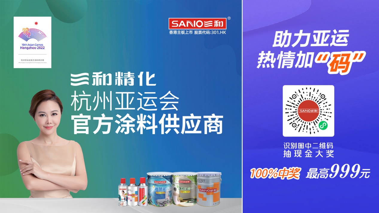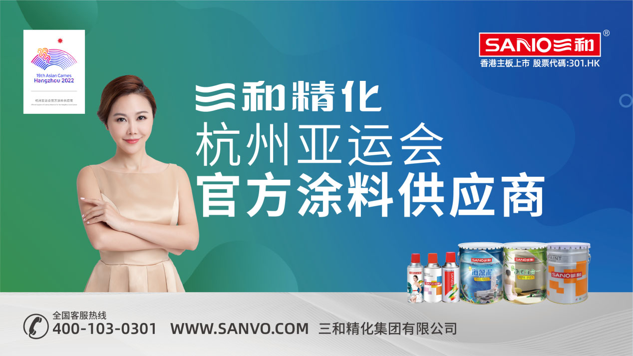 2022年3月18日,香港主板上市公司三和精化集团有限公司(股票代码:301.HK)官宣,正式成为“杭州亚运会官方涂料供应商”。