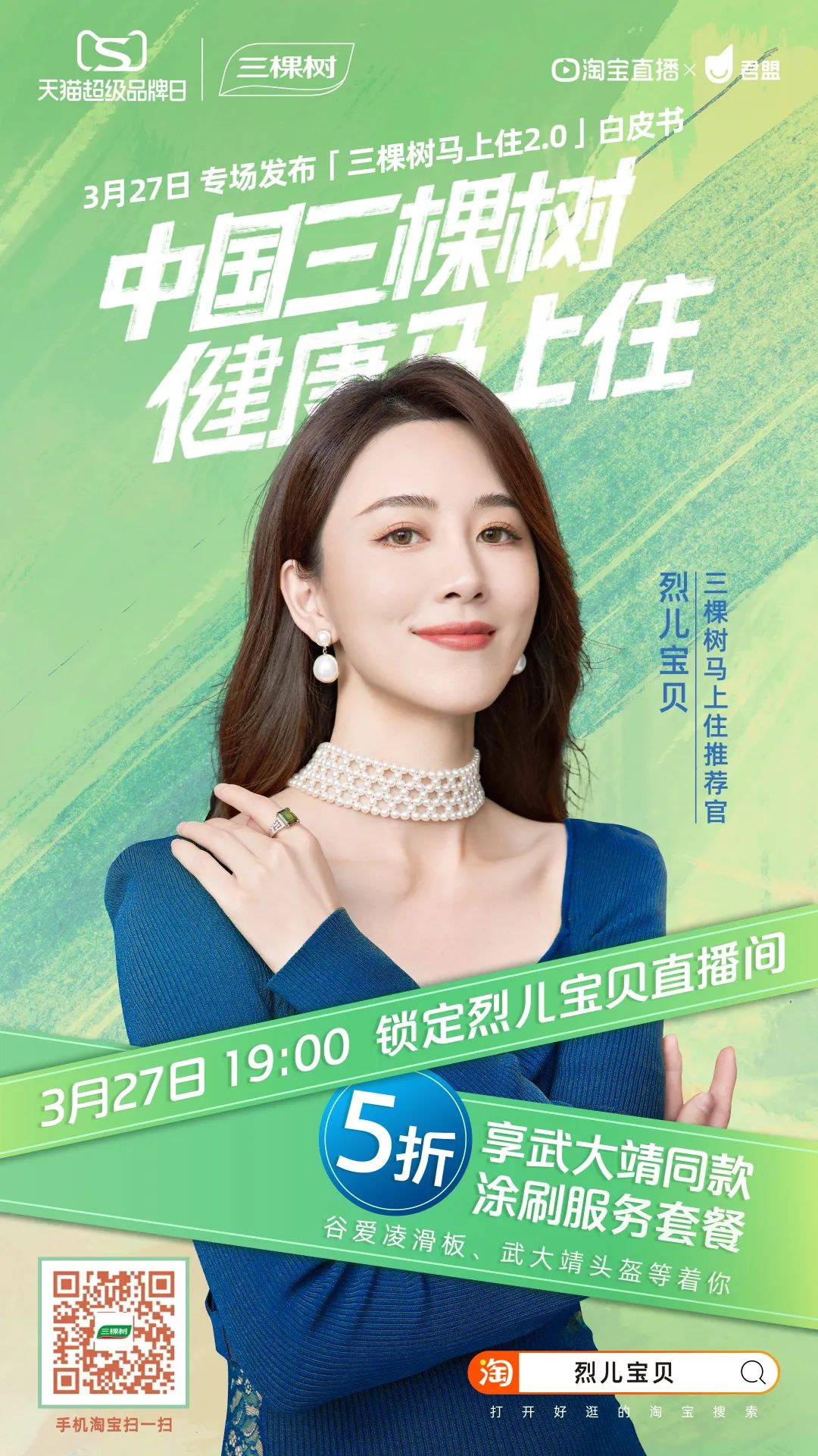 有服务升级,更有福利升级。3月27日超品日当天,19:00锁定烈儿宝贝直播间,5折享武大靖同款涂刷服务套餐。“中国三棵树 健康马上住”和冬奥冠军一起,见证三棵树天猫超级品牌日,和健康美好的新生活相约。