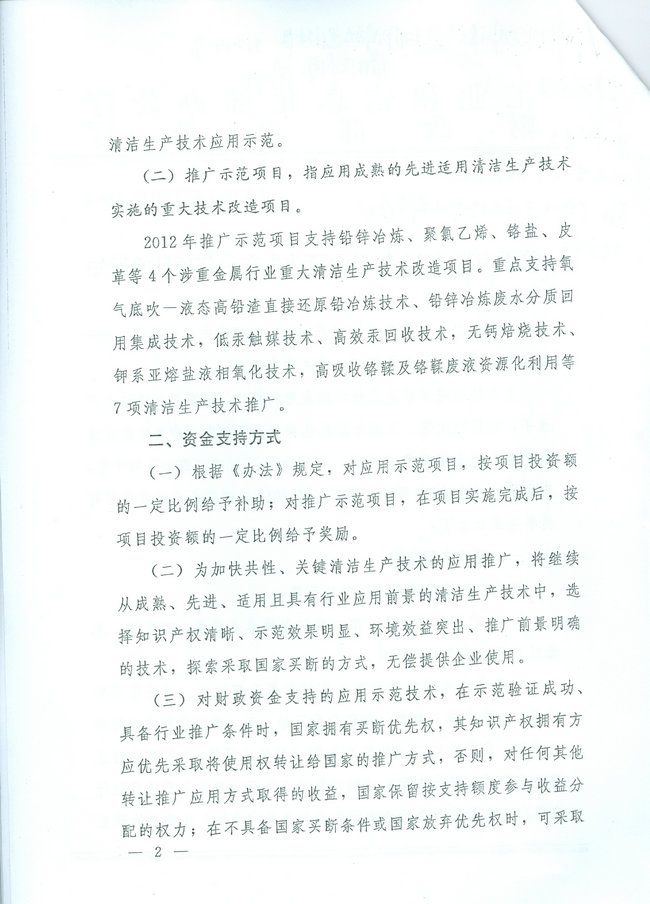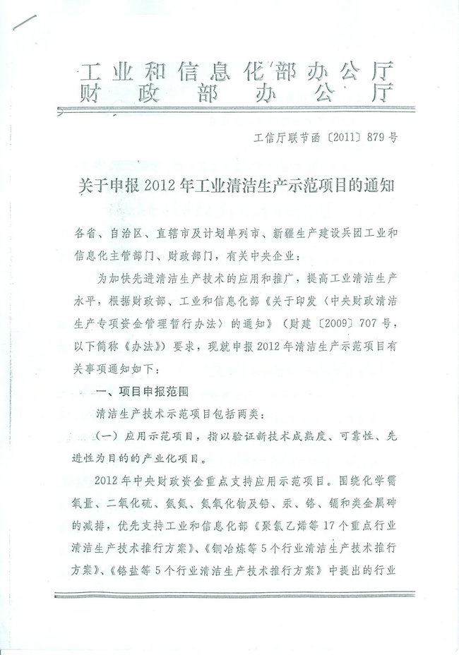 关于申报2012年工业清洁生产示范项目的通知