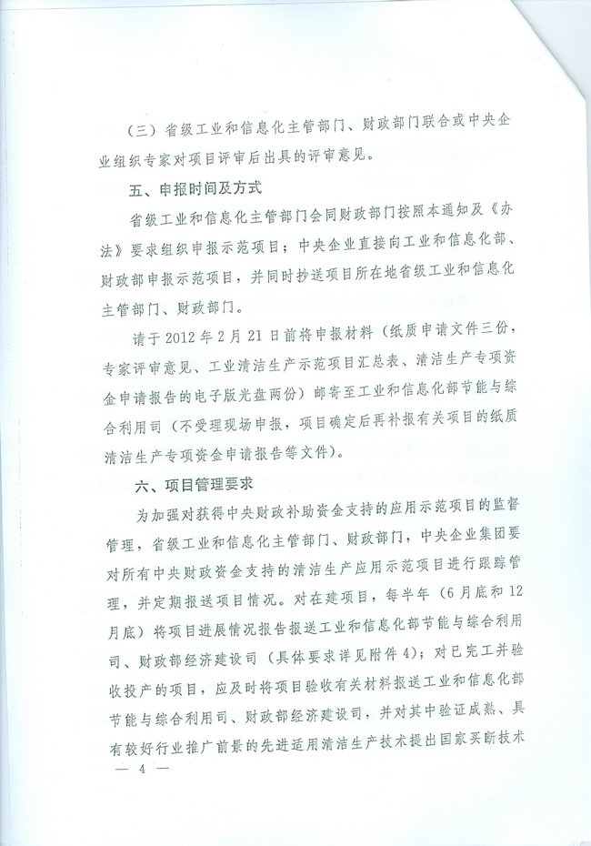 国家工业和信息化部近日下发《关于申报2012年工业清洁生产示范项目的通知》,其中由best365中国官方网站编制的国家工信部《涂料行业清洁生产技术推行方案》与《钛白粉行业清洁生产技术推行方案》中涉及项目将优先获得支持。此通知已由国家工信部下发到各地方工业和信息化主管部门,并由其组织申报。企业如需申报,可与所在省市的工业和信息化主管部门联系,申报截止日期为2012年2月21日。
