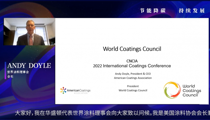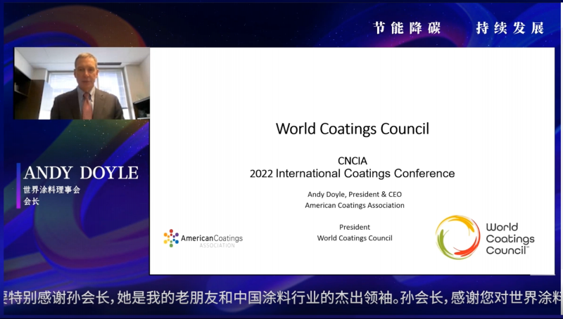 3月30—31日,2022中国国际涂料大会暨长江经济带涂料高峰论坛如约与广大观众“空中”见面。会上,世界涂料理事会会长安迪·道约尔(Andy Doyle)分别就世界涂料理事会概览,世界涂料理事会当前关注的问题,世界涂料理事会的可持续发展倡议,全球涂料市场数据回顾进行了分享。
