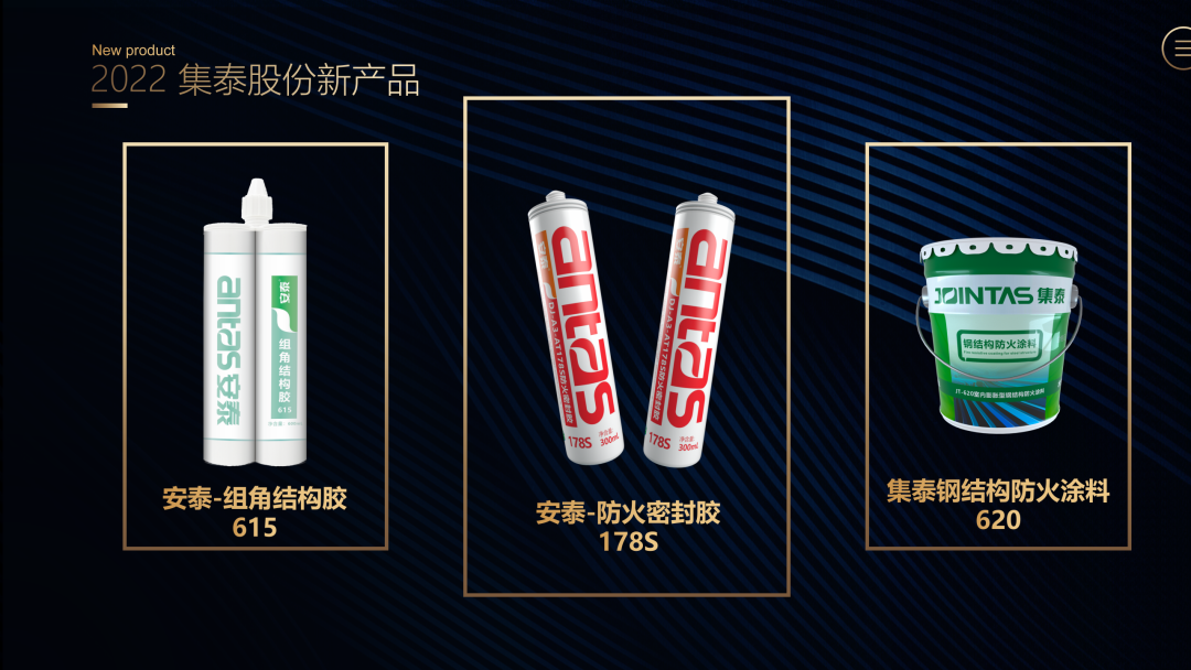 目前,集泰股份已与2000 多家客户建立了长期合作关系,旗下安泰建筑胶品牌成功入围了超过90%的百强房地产企业品牌库,连续蝉联中国房地产TOP500首选密封胶品牌前三强、连续多年荣获建筑胶十大首选品牌。