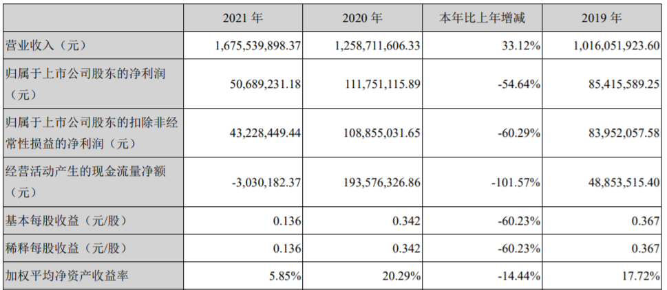集泰股份2021年主要会计数据和财务指标集泰股份3月25日晚间发布年度业绩报告称,2021年营业收入16.76亿元,同比增长33.12%;归属于上市公司股东的净利润5069万元,同比减少54.64%。