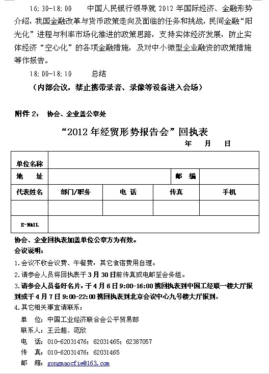 “2012年经贸形势报告会”回执表     点击我下载