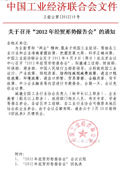 关于召开“2012年经贸形势报告会”的通知