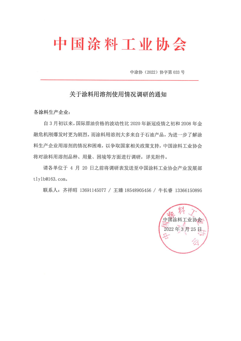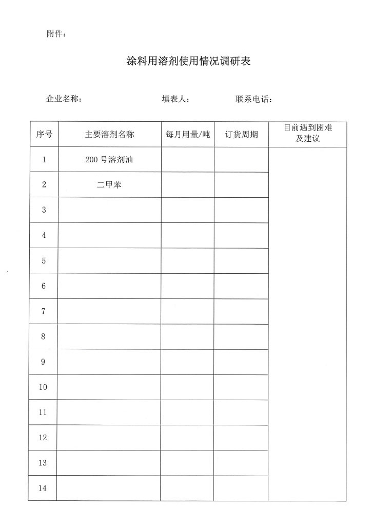 下载:涂料用溶剂使用情况调研表.doc 关于涂料用溶剂使用情况调研的通知.pdf
