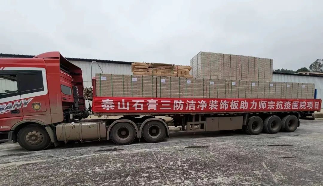 在疫情防控工作的关键时期,泰山石膏云贵区域公司积极组织协调经销商共同为云南师宗抗“疫”医院项目建设助力,全力以赴协调生产、物流等各项工作,驰援石膏板、轻钢龙骨等产品,保障项目顺利施工。与此同时,组织市场经销商做好各项防控工作,筑起疫情防控特殊时期“保供”的坚强后盾。