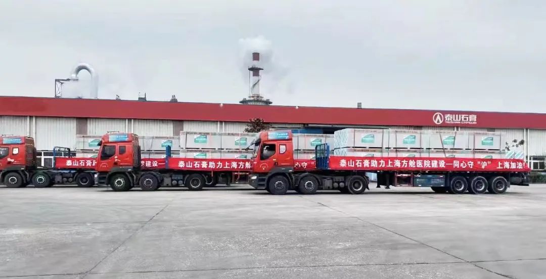 4月7日凌晨,上海市嘉定区华亭镇的方舱医院正式启用。疫情之下,每一分钟都十分珍贵。泰山石膏迅速响应政府号召,紧急驰援方舱医院建设。3月31日,组织3辆大货车奔赴上海嘉定区方舱医院,共计运送石膏板近15000平方米。为配合上海方舱医院供货进度,泰山石膏启动重点物资运输机制,按照“优先安排、优先配车、优先装车、优先发运”原则确保石膏板准时送达,为方舱建设争取施工时间。