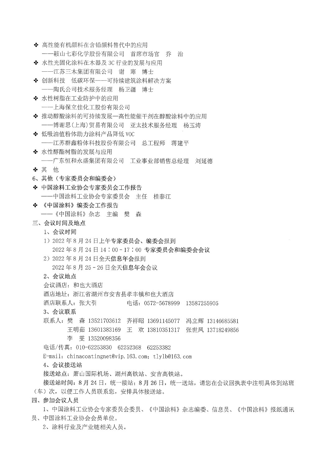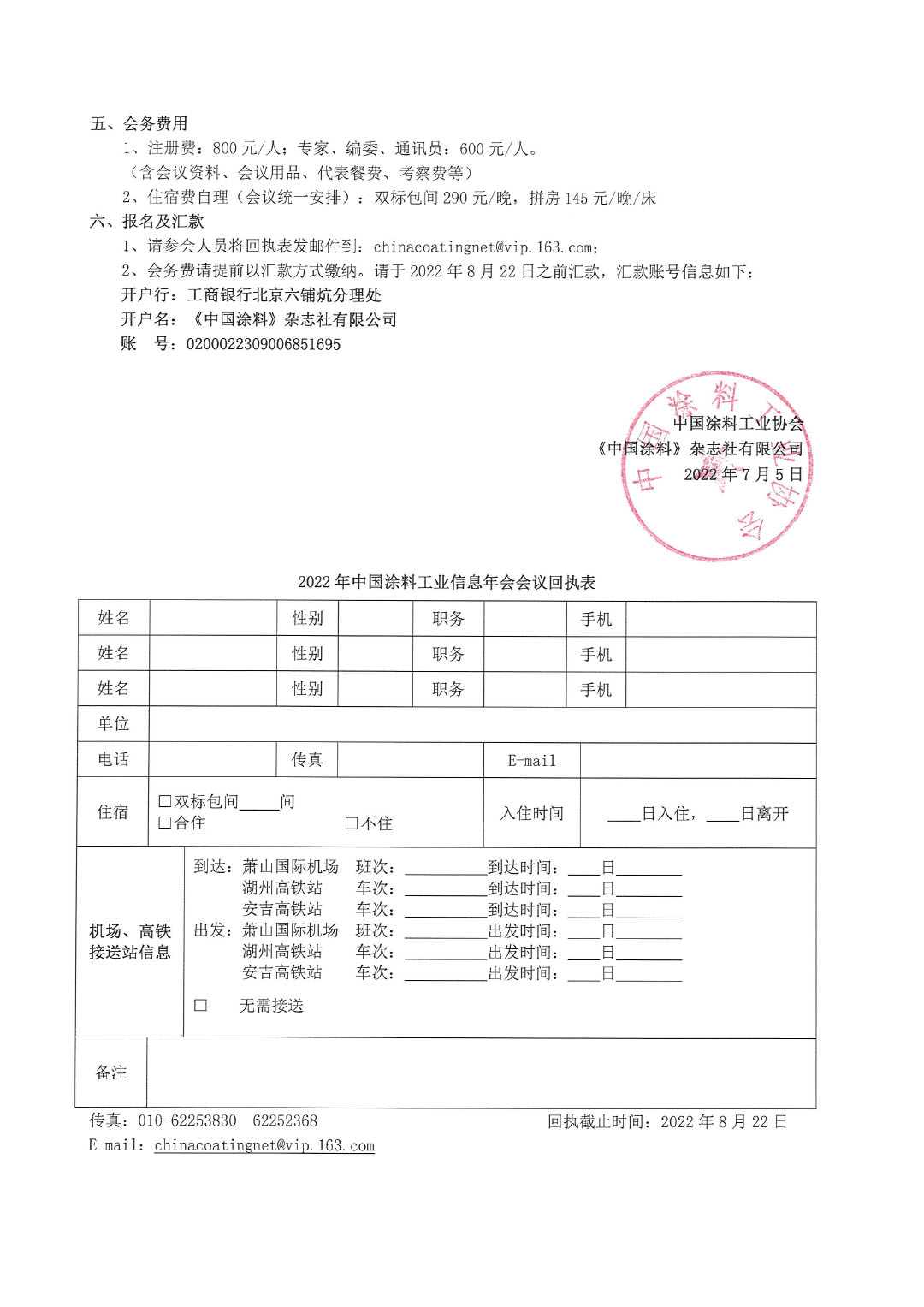 传真:010-62253830 62252368 回执截止时间:2022年8月22日 E-mail:chinacoatingnet@vip.163.com