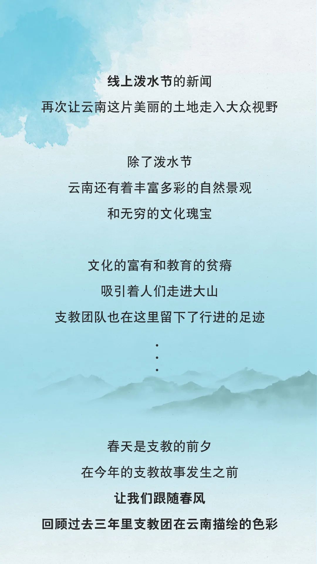 “每个孩子都是一颗种子,可以开花、结果。”支教团员这样形容。美丽的彩云之南,孩子们求知的眼睛像一汪清泉洗涤世故的尘埃。而支教团不仅教授知识,也是孩子们接触外面世界的一扇窗。为爱步履不停,今年的故事还没开始,过去的感动却可以随影像回溯,一起看看#为爱上色 支教团队在云南地区留下的足迹吧~