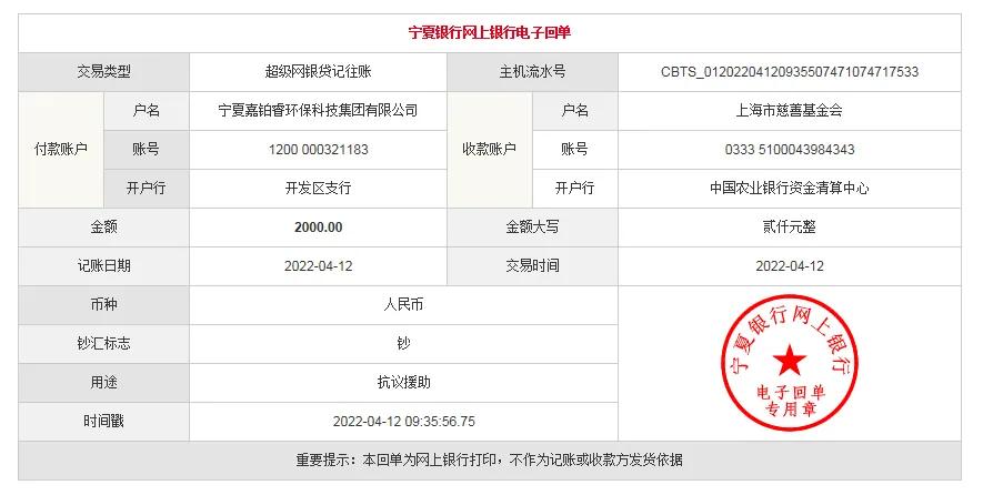 疫情无情,人间有爱!疫情牵动着宁夏嘉铂睿环保科技集团总裁蔡博松的心,情系上海,心在家乡河北省保定市博野县。为此,专门安排办公室人员,4月9月为家乡保定市博野县防疫防控捐款1万元,4月12日为上海防疫防控捐款2000元,以共同为上海防疫一起行动,同心守护保定博野家园抗疫援助。