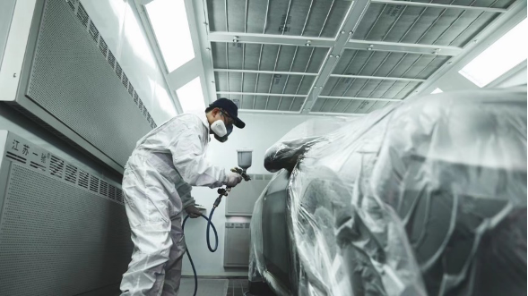 为了保障工作正常进行坚守岗位的汽车修补漆员工