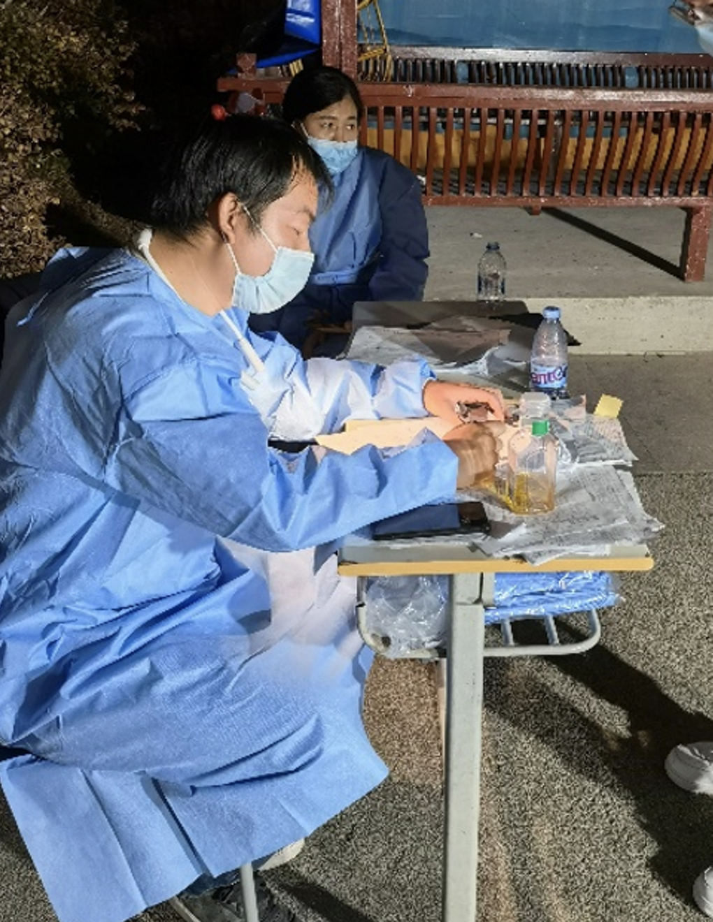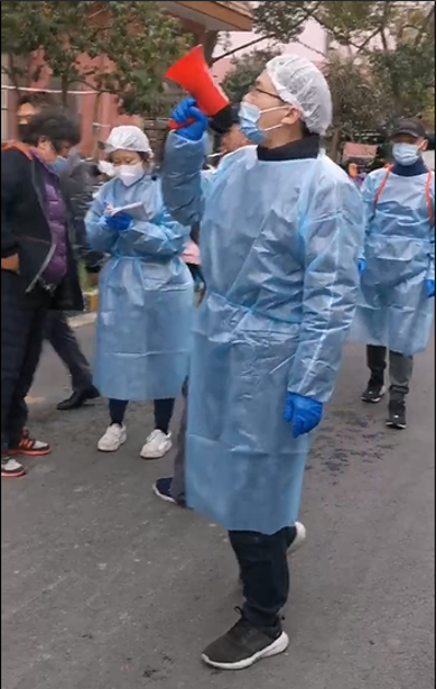 “一遍又一遍,嗓子就算喊哑了,也要动员社区未做核酸的居民及时参加核酸检测。”——立邦党支部刘松林