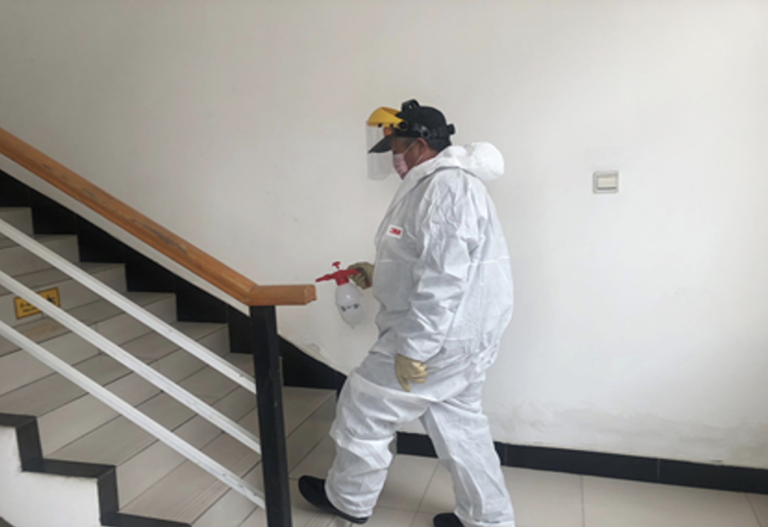 物业人员对厂区公共设施、卫生间、办公室、走廊等无死角全方位进行消杀