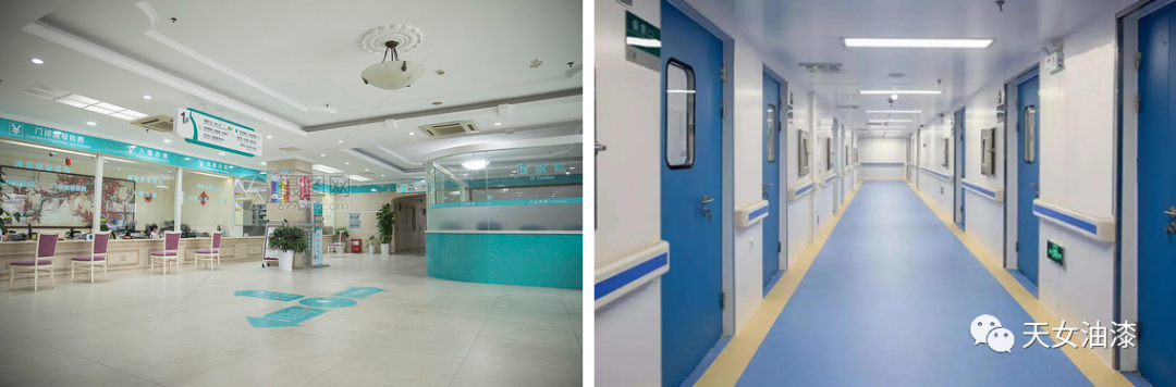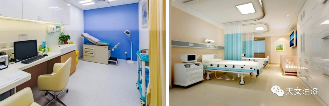 医疗机构由于人员流动量大,就诊群体体质较弱,医疗空间相对容易造成环境污染和细菌传播。在装饰装修材料的选用上,推荐使用抗菌、防霉、耐擦洗、易清洁及舒适美观等功能涂料,天女漆为医疗空间防护提供以下产品和涂装建议。