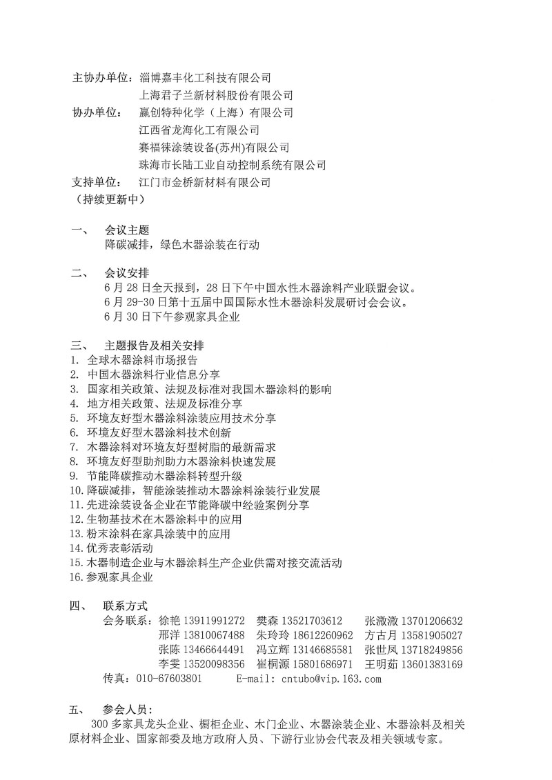 6月29-30日 第十五届中国国际水性木器涂料发展研讨会会议。