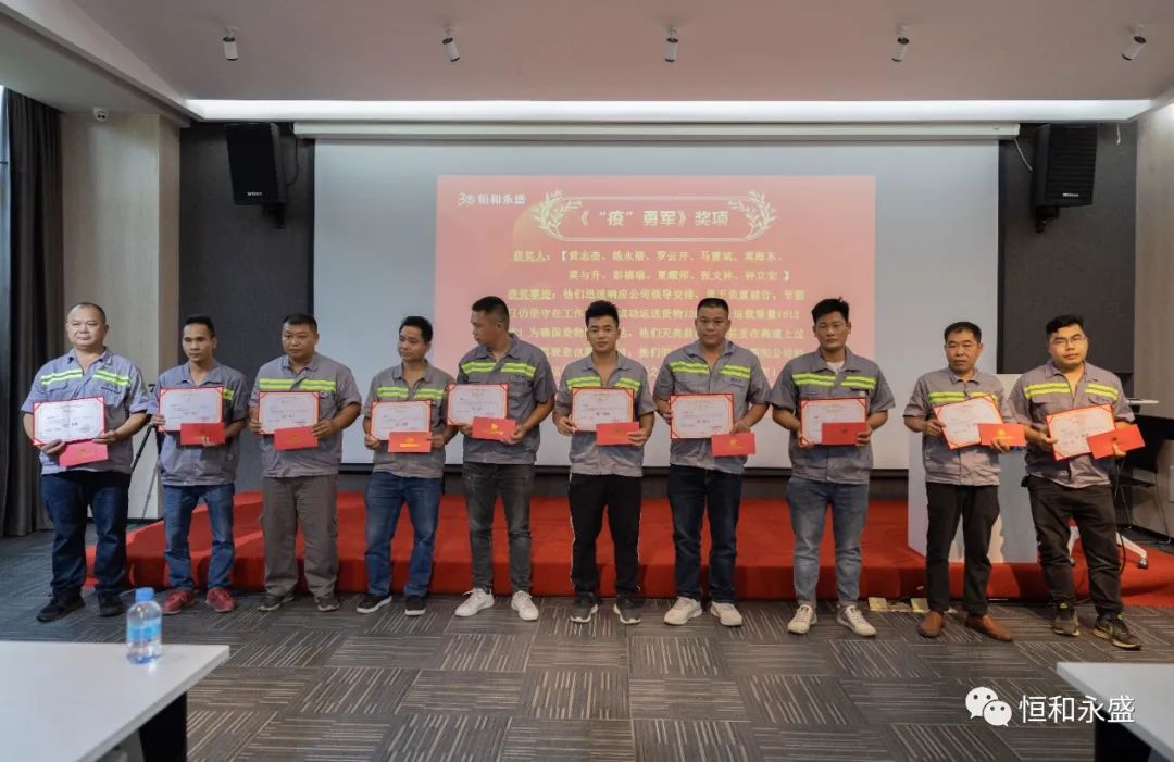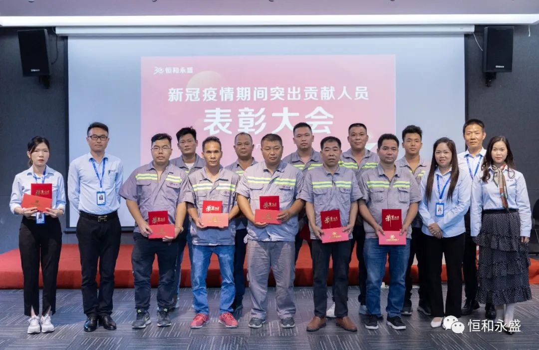 在疫情防控工作开展期间,集团涌现出一批勇于担当、乐于奉献的先进典型,为打赢疫情防控战凝聚了强大的信心和硬核力量。4月22日,恒和永盛集团召开新冠疫情期间突出贡献人员表彰大会,向奋战在一线并作出突出贡献的员工授予 “ ‘疫’勇军”、“防疫标兵” 的称号并予以嘉奖。