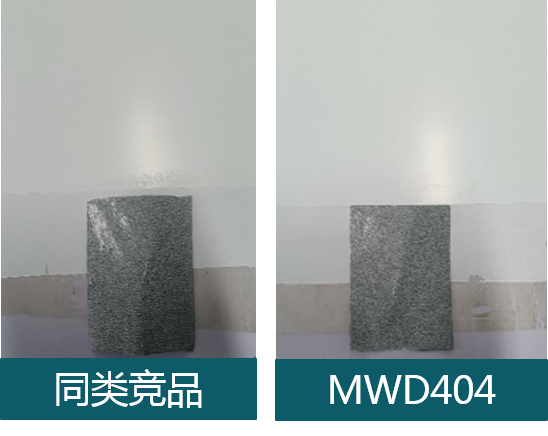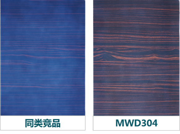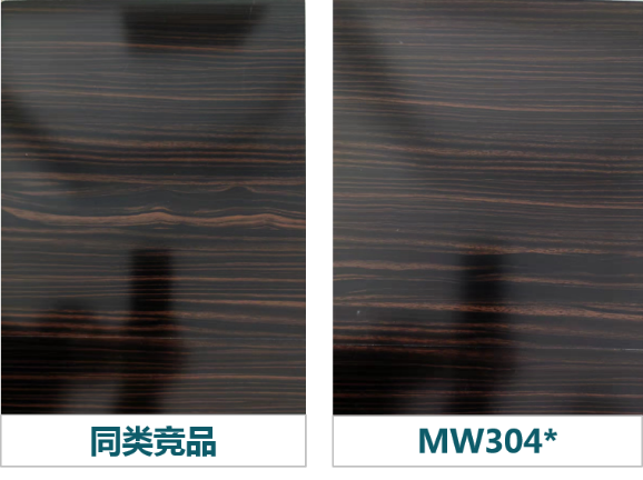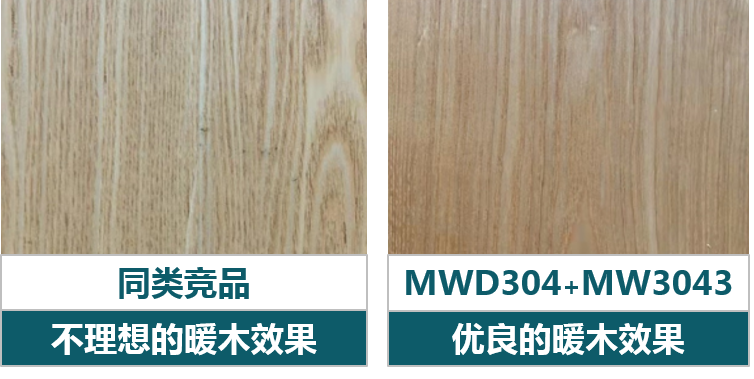 MWD304和MW304*湿膜和干膜透明度皆优,湿膜清透,观感更好,也能有效降低因施工工艺和干燥条件引起的干膜发白概率,干膜清透能更清晰的展现底材纹理。