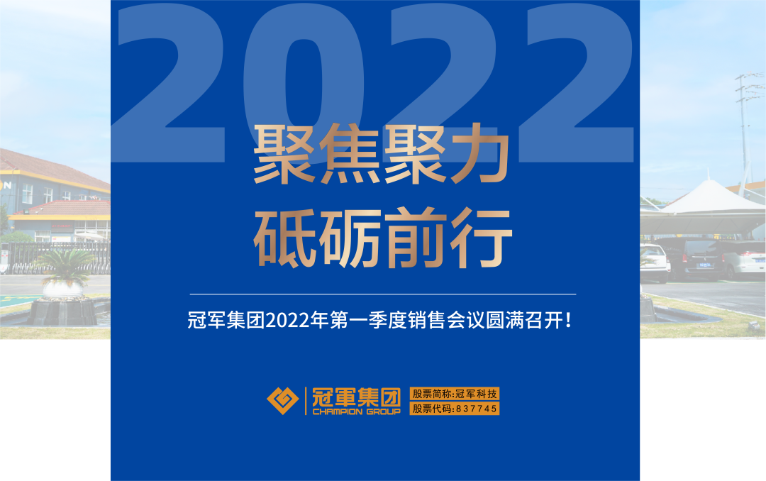 春风拂面,万象更新。为了更好的统一作战思路,凝聚发展意识,聚焦销售目标,冠军集团召开了2022年第一季度销售会议。在防疫安全的前提下,会议采用线上线下相结合的形式召开。冠军集团创始人、董事长谢海先生,集团副总裁兼销售总监刘其飞及销售全体成员参加会议。此次会议以“聚焦聚力,砥砺前行”为主题,主要任务是全面总结和回顾第一季度销售业绩,客观分析市场情况,共同探讨当前形势下的应对政策,安排部署第二季度销售工作,促成销售指标的圆满超额完成。